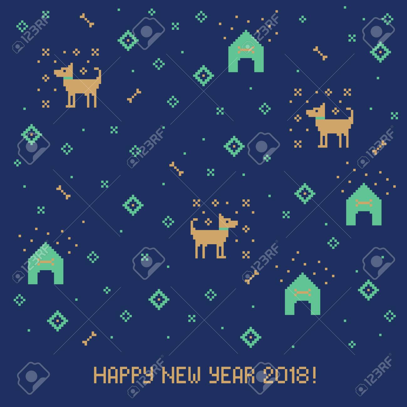中国新年あけましておめでとうございます 18 クロス犬とスティッチのグリーティング カード ピクセル アート の写真素材 画像素材 Image